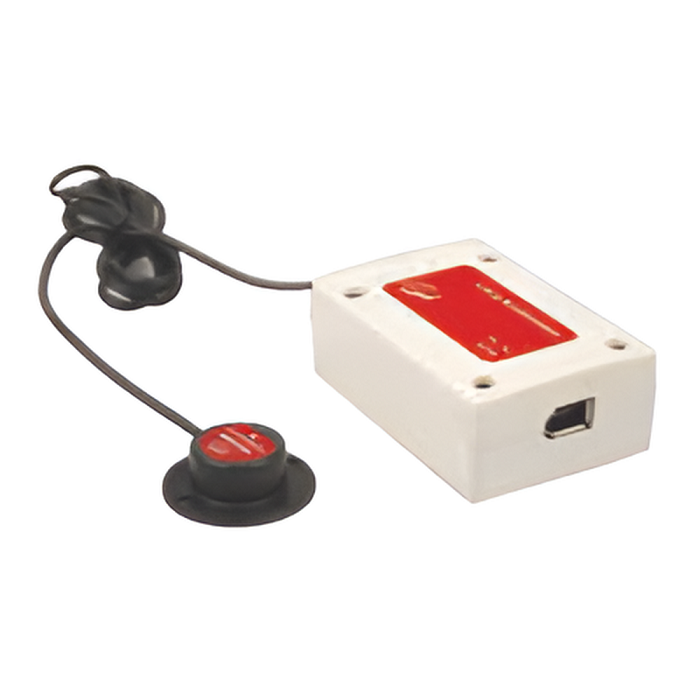 Акселерометр для низких значений ускорения свободного падения g для опытов с линейным движением. Чувствительный элемент датчика расположен внутри небольшой круглой коробки, которая может устанавливаться на движущемся объекте. Это наиболее удачное решение для большинства опытов.