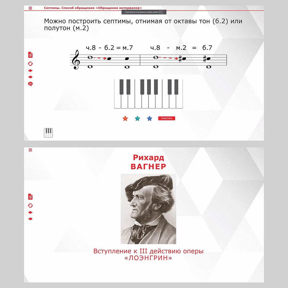 - обучающий материал (тексты, ноты, иллюстрации, аудио- и видеофрагменты);