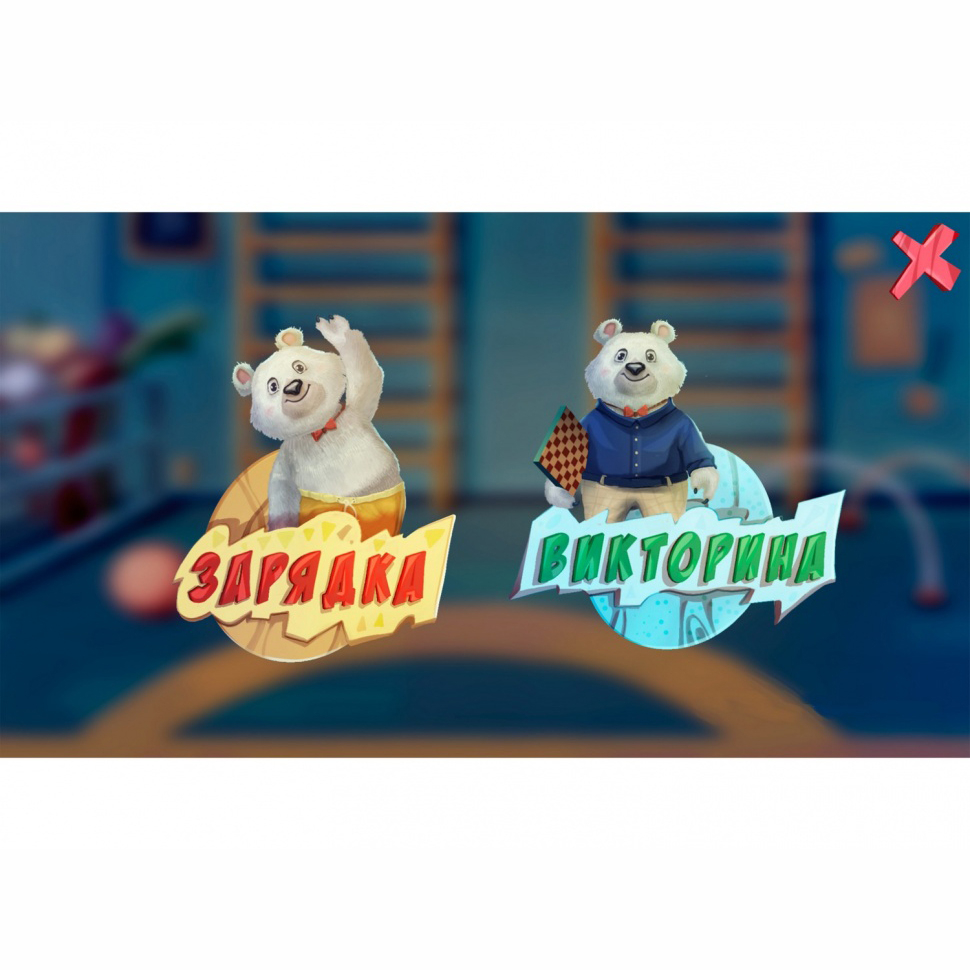 Белый медведь УМКА с помощью бесконтактного сенсорного контроллера поможет провести педагогу весёлую зарядку. Kinect улавливает характерные движения человека и передаёт их персонажу на экране. Ведущий вместе с медведем может показать ребятам: