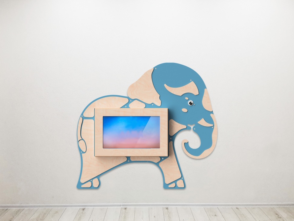 Настенная панель «Слон» со встроенной интерактивной сенсорной панелью 32 дюйма. Это одновременно декоративное оформление стен и развивающая игрушка, ведь на панели установлен пакет игрового и обучающего ПО.
