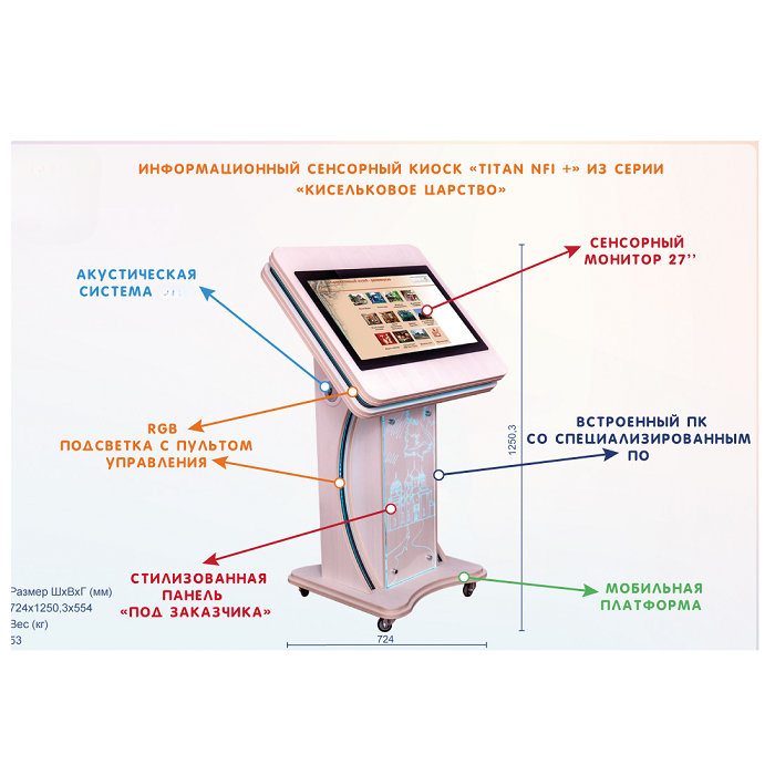 Сенсорный информационный киоск «Titan NFI» представляет собой полифункциональный и многоцелевой интерактивный комплекс, который выполнен в виде декоративной стойки.