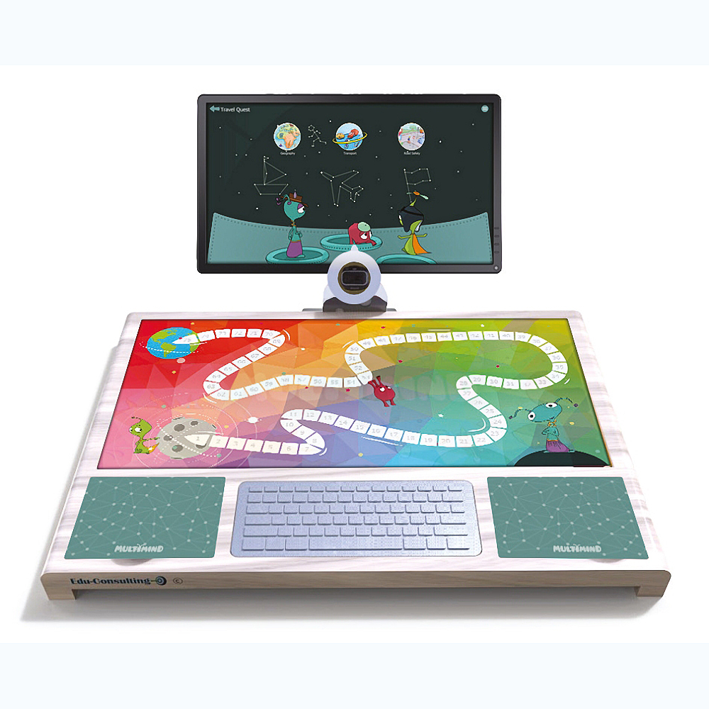 В состав комплекта входит: мультимедийное программное обеспечение, интерактивный рабочий стол, оснащенный удобной клавиатурой и двумя пультами управления, встроенной камерой для распознавания различных дидактических материалов и действий детей, а также дидактические материалы и детальные планы уроков.