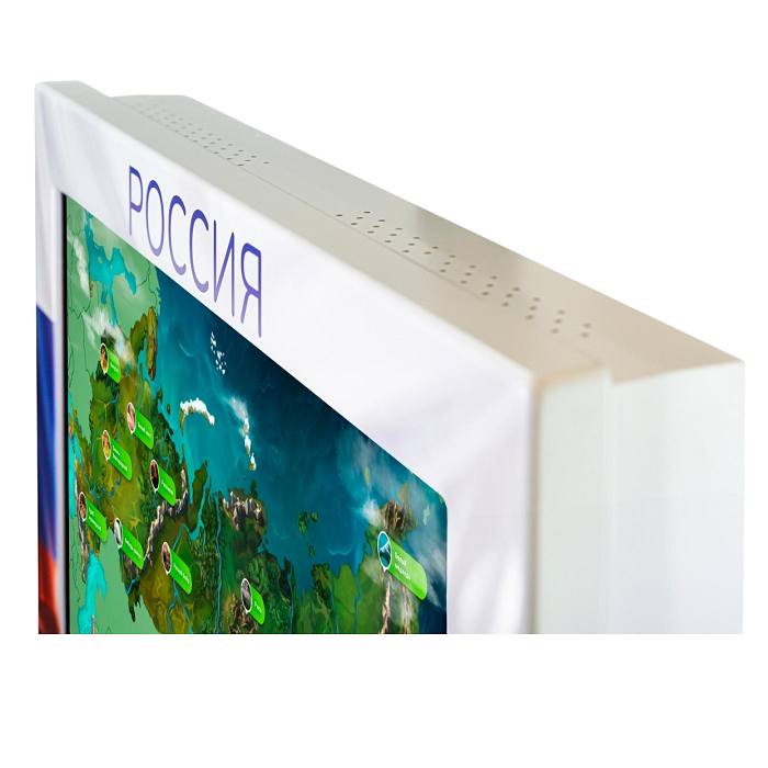 Интерактивная панель с сенсорным монитором, оформленная в стилистике российского триколора. Панель подходит для реализации национальных проектов «Современная школа» и «Патриотическое воспитание». Панель идёт со встроенным ПО и полностью готова к работе.