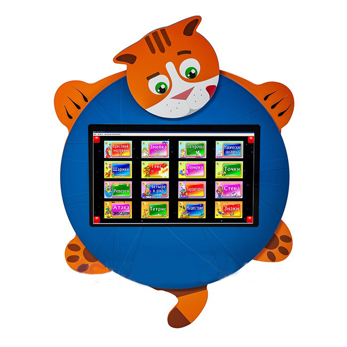 Настенная сенсорная панель «Рыжик» выполнена в привлекательном дизайне для размещения в групповых комнатах детских садов, рекреациях, начальных школах и детских комнатах ресторанов и ТРЦ.