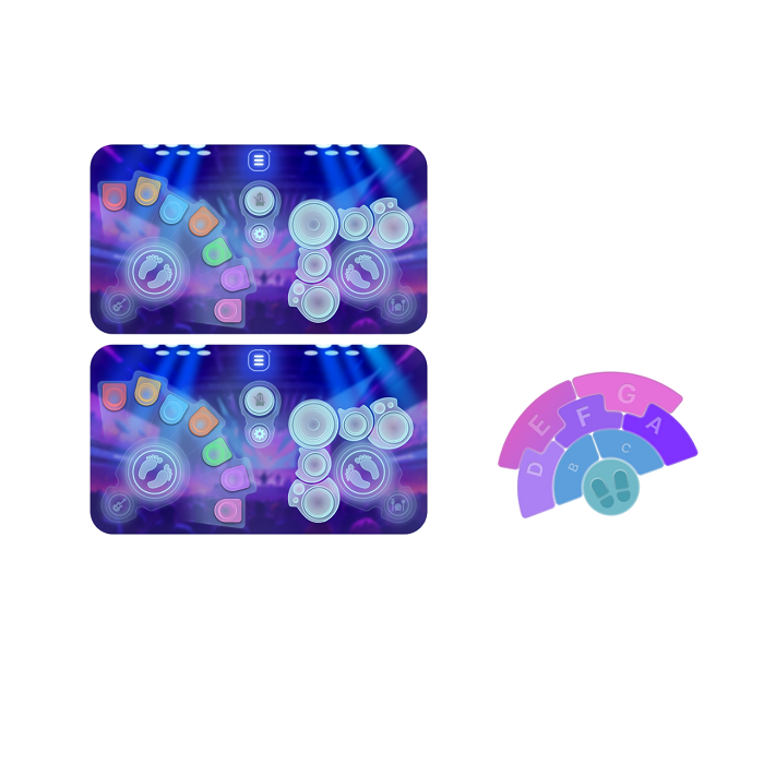Одновременно играют два человека. Цель игры – ориентируясь на образец по центру площадки нажать на заданную кнопку на своем игровом поле быстрее соперника и заработать больше баллов.