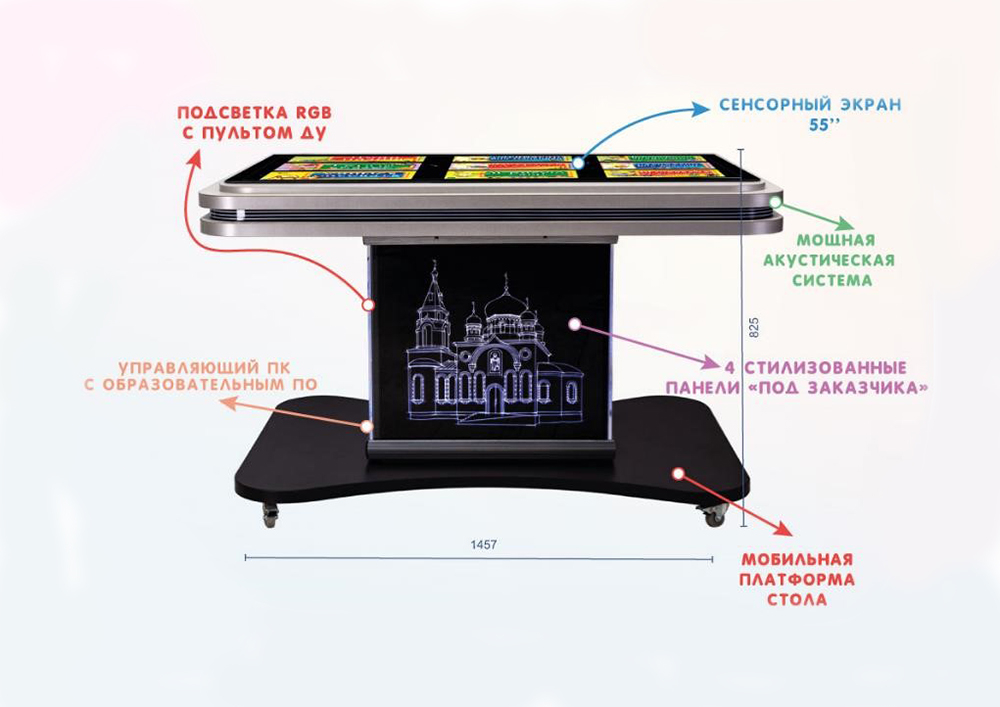 Программное обеспечение в интерактивных столах отличается удобным и понятным интерфейсом. Сенсорная поверхность реагирует, как на управление пальцами, так и на специализированный стилус.