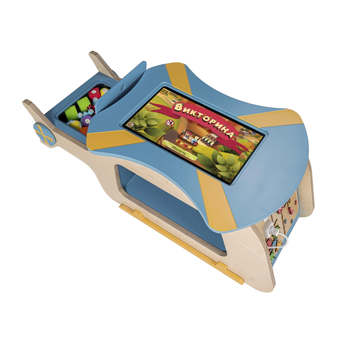 В носовой части МИК «Вертолёт» установлено тактильное панно Монтессори. Развивает мелкую моторику и логику, позволяет безопасно научиться пользоваться предметами быта.