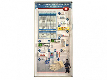 Стенд "Состав автомобильной аптечки" с оригинальными образцами