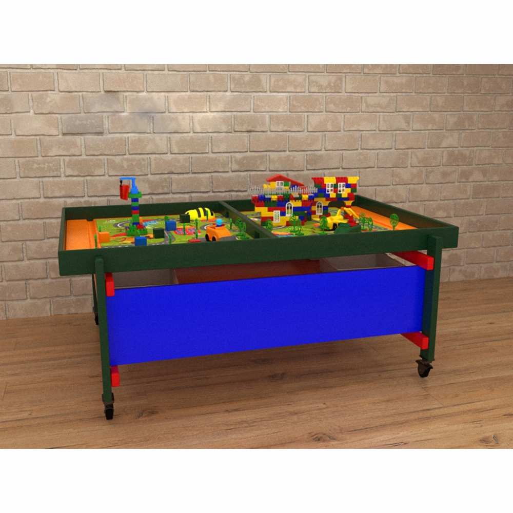 Столешница обладает широким игровым потенциалом – используя методические рекомендации и разнообразнве игровые наборы, можно многократно увеличить диапазон её использования. Расположенные на поверхности стола локации помогут формированию у детей картины мира и отдельных его составляющих. Локации ограничены друг от друга бортиками, это позволяет расположить одновременно на одном столе 2 совершенно разные развивающие игры. В полках стола можно хранить развивающие материалы, предназначенные для развития разнообразных навыков у детей.