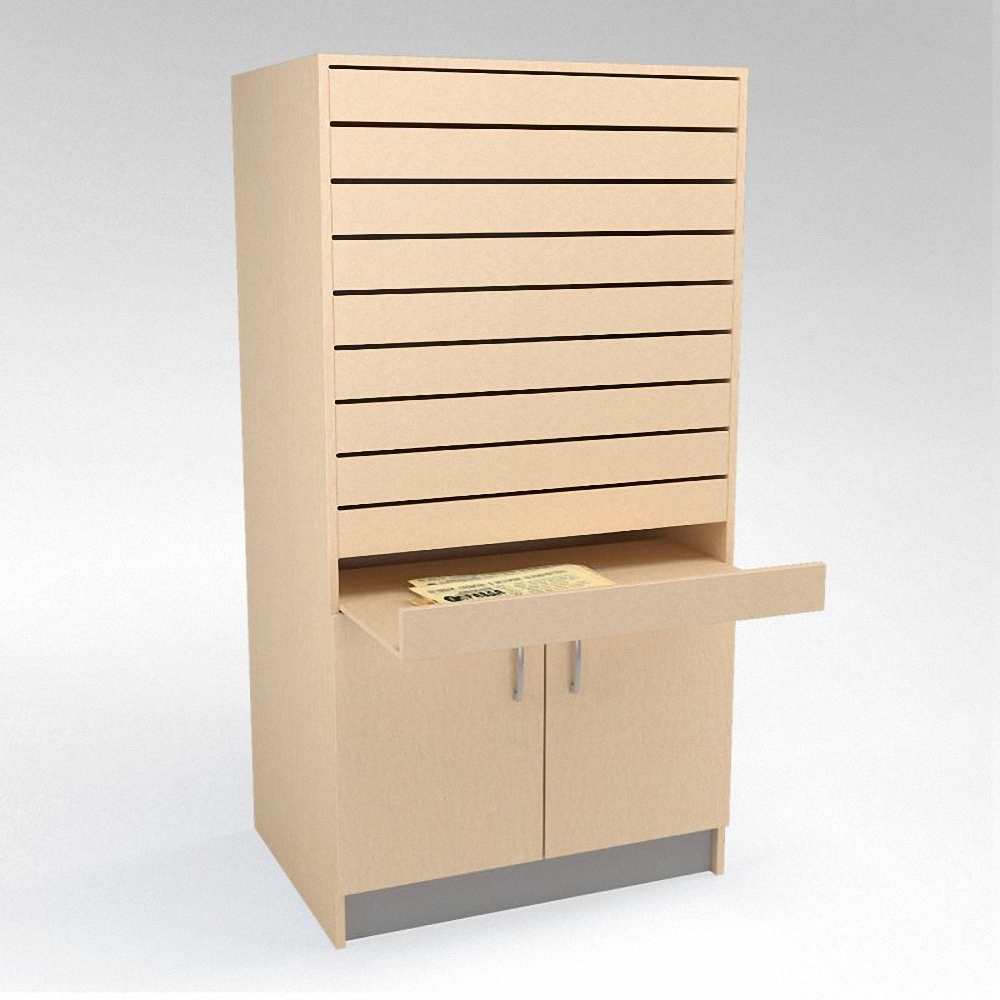 Шкаф также имеет полки для хранения журналов и других литературных пособий.
