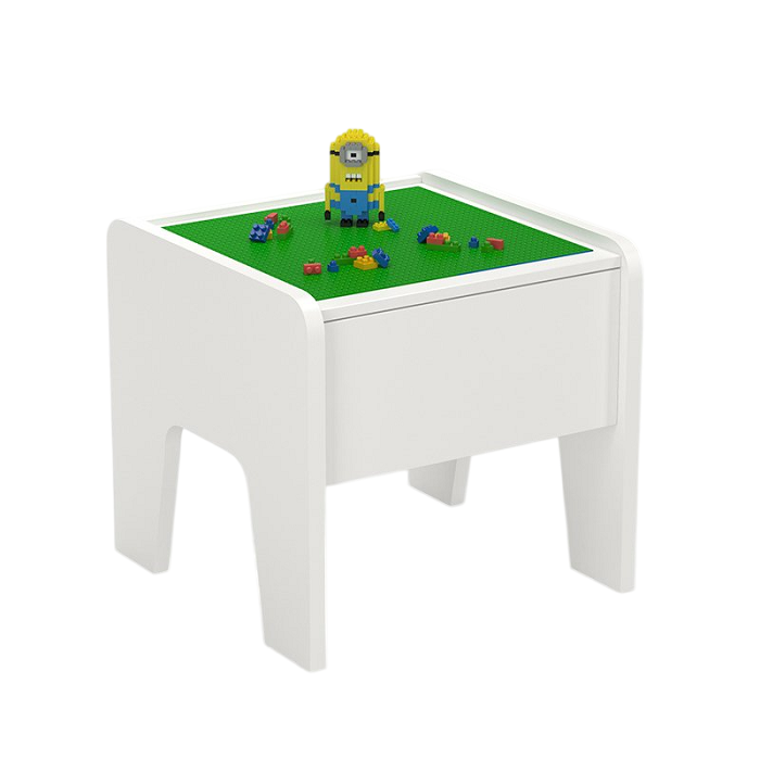 Компактный стол для игр в лего, замечательно подходит для детских садов, развлекательных и обучающих детских центров и школ. Предназначен для первоначального обучения в области робототехники, как тренажёр для конструирования. Снабжён удобным выдвижным ящиком, куда можно убрать конструктор на время перерыва в занятиях. Стол яркий удобный с комфортной лего-панелью для всех манипуляции учащегося.