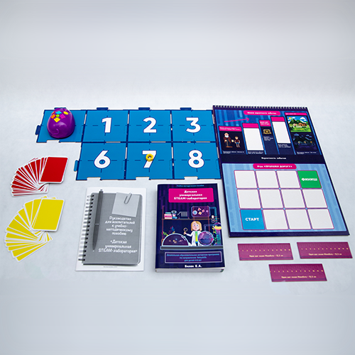 Детский развивающий набор парциального образования "Детская универсальная STEAM-лаборатория" для детей в возрасте 4-8 лет включающий в себя 72 основных и более 25 дополнительных занятий по основам чтения, основам программирования, основам математики и теории вероятности, основам картографии и астрономии, основам криптографии.