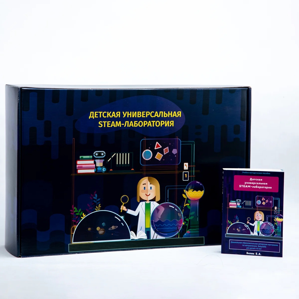 Развивающий набор «Детская универсальная STEAM лаборатория» разработана по принципу от простого к сложному! Более 100 интерактивных заданий и проектов на целый учебный год, методическое пособие и руководство для преподавателей.