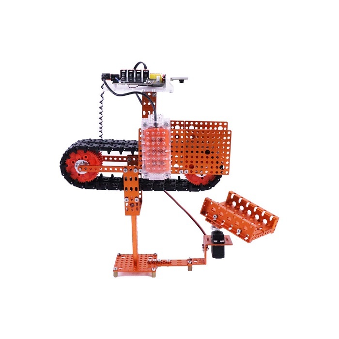 Образовательный набор Industry 4.0 - это комплект инструментов и материалов для создания и программирования фрагментов производственных процессов с возможностями искусственного интеллекта. В состав входит контроллер с техническим зрением, двигатели, аккумуляторная батарея и металлические детали для сборки.