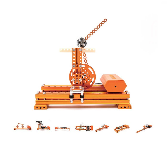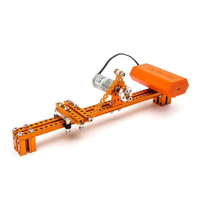 Набор SТЕАМ «Механика» представляет собой комплект из конструктивных металлических деталей, платы управления, электронных модулей, двигателя постоянного тока, инструментов для сборки.