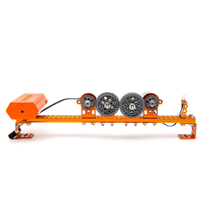 Механизм зубчатой передачи приводит двигатель во вращение, тем самым генерируя электричество и питая светодиоды. Реализует процесс преобразования энергии из механической в электрическую и наоборот. - Ультразвуковая гитара