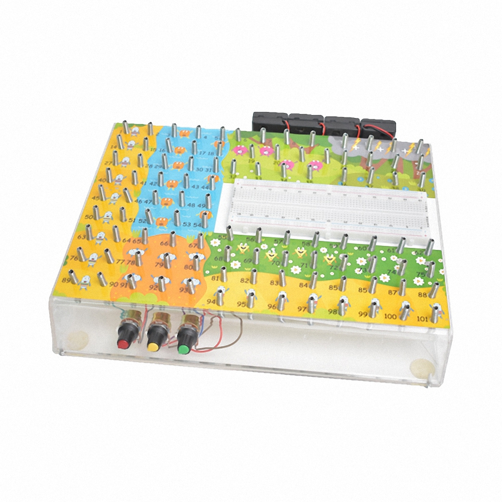 Комплекс «Электроника для юных гениев» позволяет расширить возможности обучения за счёт использования макетной платы. С её помощью подключаются дополнительные устройства, которые позволяют лучше познакомиться со свойствами электричества и электромагнитных полей.