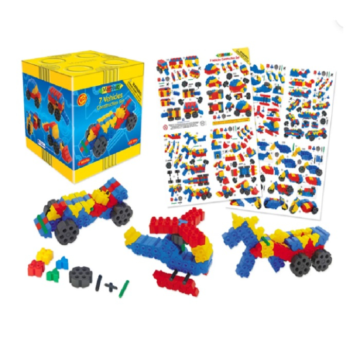 Конструктор «Машины» состоит из 80 пластмассовых деталей: квадраты, треугольники, колеса, соединительные и направляющие элементы. Два двусторонних листа формата А3 со схемами сборки различного уровня сложности 7 моделей машин.