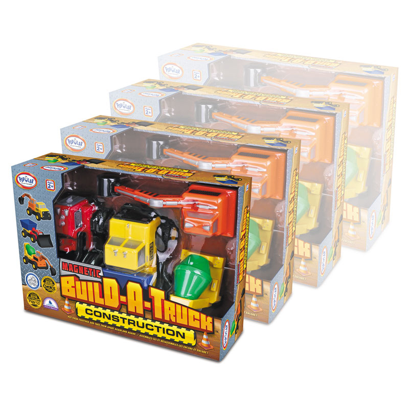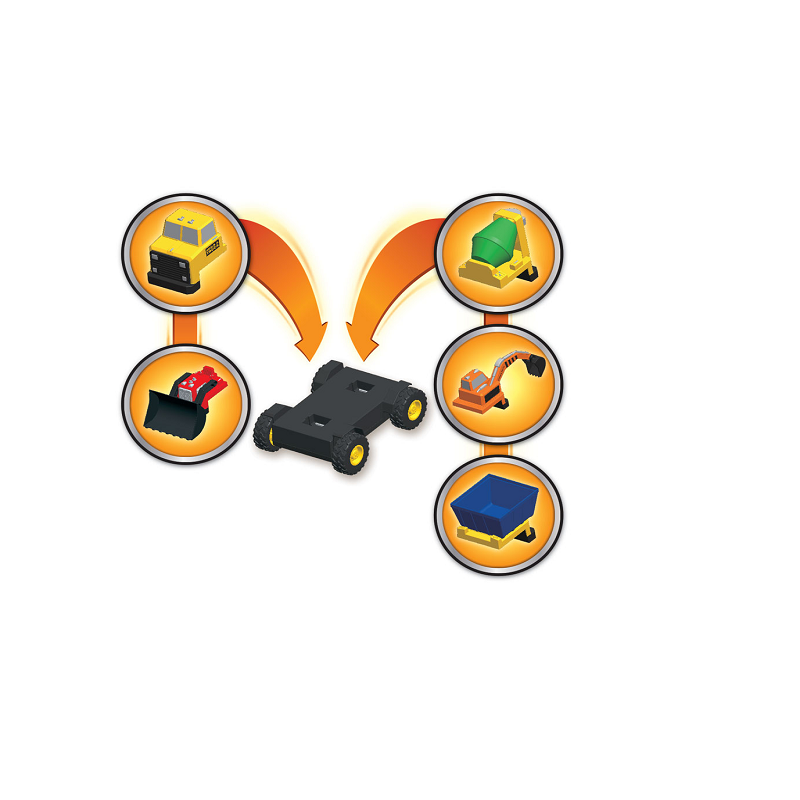 Крупные модели грузовиков созданы для самых юных конструкторов. Модели создаются из ярких деталей, которые хорошо держатся друг с другом, легко собираются и разбираются благодаря элементам с применением магнитов. Ребенок сможет создать самые разнообразные грузовики, включая самосвал, бетономешалка, экскаватор, автопогрузчик. И каждый из них едет на настоящих резиновых шинах!