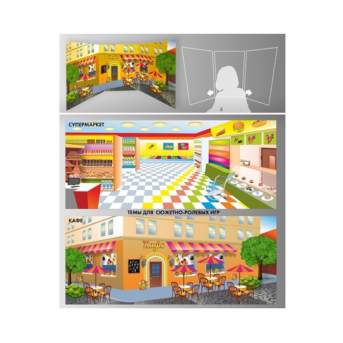 Стенд для сюжетно-ролевых игр 2-х сторонний (супермаркет, кафе)