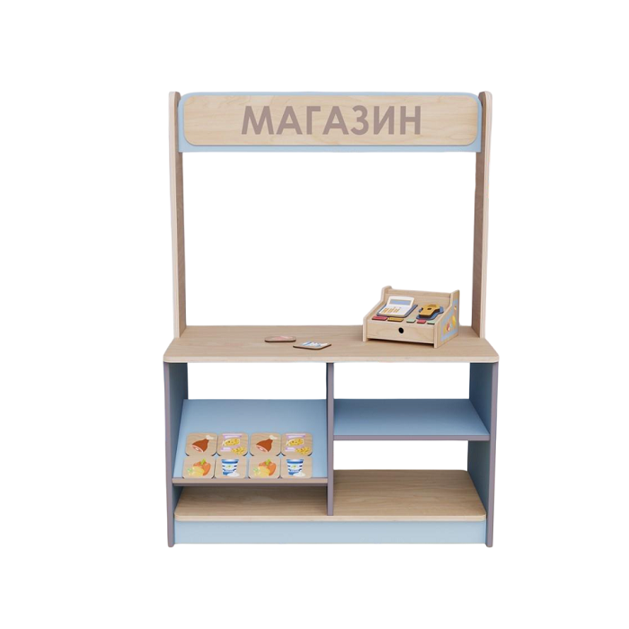 Этот набор предоставляет детям возможность участвовать в увлекательных ролевых играх, развивая их воображение, навыки общения и базовые математические навыки. Магазин изготовлен из высококачественных деревянных материалов и имеет привлекательный дизайн, который станет украшением центральной группы.