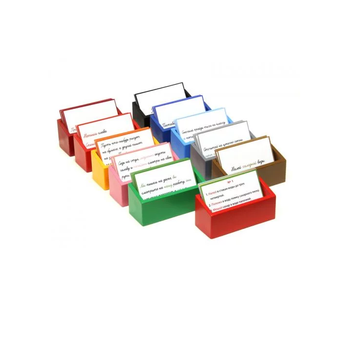 Ребёнок прочитывает текст на карточке и в соответствии с ним выполняет действие или ряд последовательных действий.