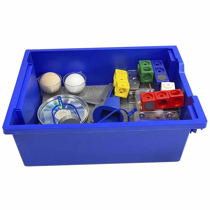 В этом комплекте содержится все, что поможет узнать детям о силах и магнитах в повседневной жизни. С комплектом для экспериментирования «Первые опыты. Простые механизмы и постоянные магниты» дети узнают: