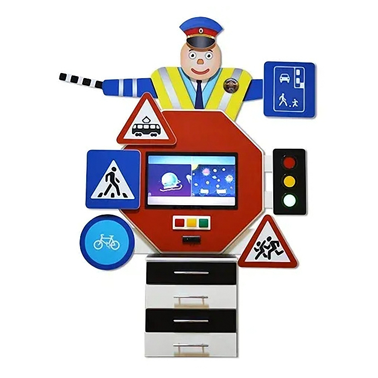 Мультимедийный интерактивный комплекс ПДД «СТОП» выполненный из декоративного корпуса ЛДСП с кромкой ПВХ он подойдет для обучения детей правилами дорожного движения, дошкольного и начально школьного возраста. С помощью этого модуля и 340 программ занятия будут проходить с большим интересом для каждого ребенка. Программы разработаны специально для изучения правил дорожного движения в игровой форме на такие темы как (проезжая часть, знаки, транспорт, светофор).