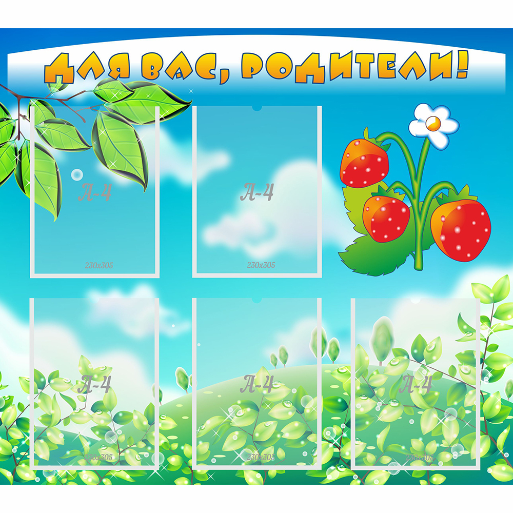 Большой и красивый информационный стенд, созданный специально для того, чтобы помещать необходимую информацию для родителей, это отличное решение для каждого детского сада. Данный стенд сделан по всем стандартам качества и требованиям безопасности. Его легко и просто установить, он идеально сочетается с любым дизайном помещения. Потому что имеет интересное дизайнерское решение, яркие цвета, которые прекрасно смотрятся в детском стиле. Стенд не только будет полезен для родителей, но и создаст нужную атмосферу детства и радости в самом детском саду. Несколько карманов для информации позволяют поместить нужные объявления.