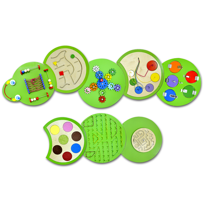 Тактильно-развивающая панель «Гусеница Жужа» — это красочная настенная гусеница заменит до 40 игрушек. Она вызывает огромный интерес как у малышей, так и у детишек старшей группы.