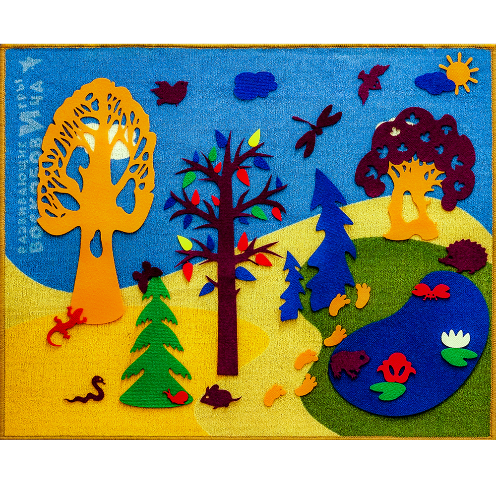 Многофункциональная развивающая среда «Фиолетовый лес» позволяет решать любые образовательные задачи, связанные с развитием способноcтей ребенка. Идеальная для проведения групповых игровых занятий, ковролиновая основа «Фиолетового леса» может быть трансформирована по желанию педагога под нужды конкретного занятия. Поле - основа крепится к стене.
