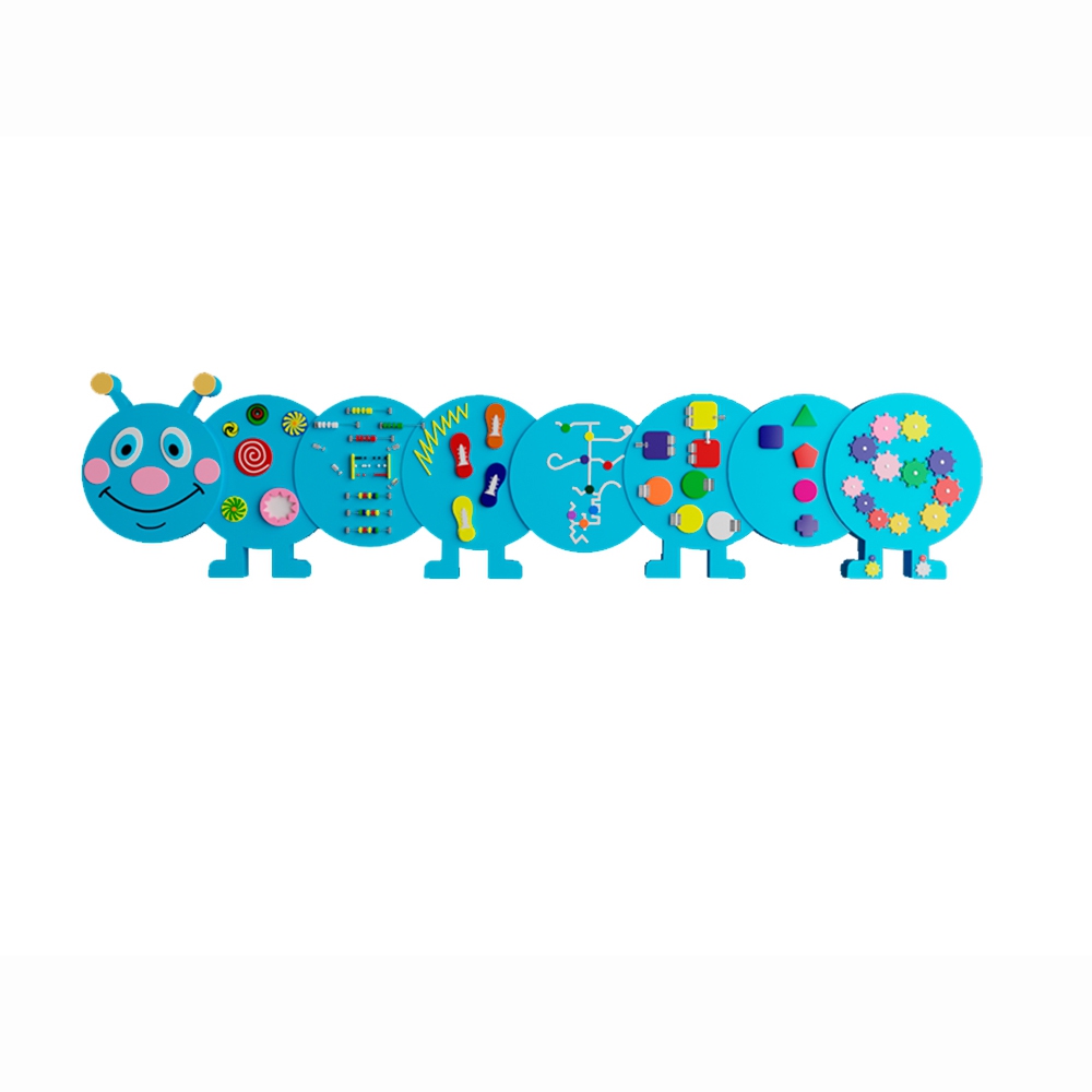 Бизиборд «Веселая гусеничка №2» украсит любую детскую комнату, развивает моторику, концентрацию внимания, мышление, память ребенка и не только. Благодаря приятному голубому цвету и задорной улыбке гусеницы, которая привлекает внимание ребенка почти сразу, малыш готов погрузиться в увлекательную игру с новым другом. Красочные, необычные детали развивающей игры, выполнены из безопасных материалов, что позволяет пользоваться бизибордом с самого раннего возраста, привлекая внимание ребенка с пользой.