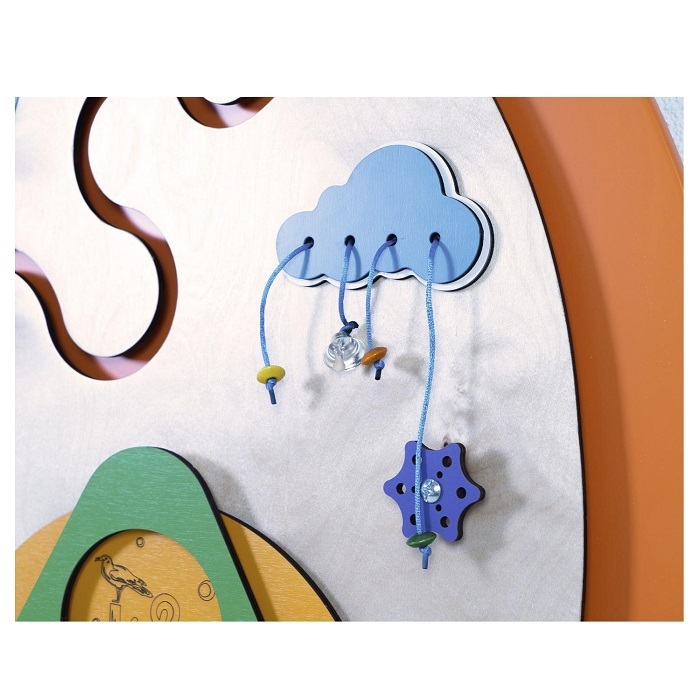 Развивающий сенсорный бизиборд «Крум» украсит стену любого образовательного учреждения. Необычный внешний вид непременно привлечет внимание детей, а встроенные развивающие элементы займут их надолго.