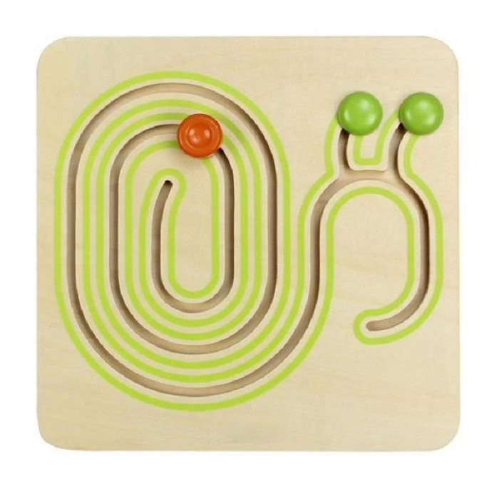 Панель выполнена из березовой фанеры. На лицевой поверхности панели выполнена прорезь-углубление в виде лабиринта-улитки, в прорези подвижно закреплен бегунок красного цвета. Очаровательная настольная игра в форме улитки, способствующая развитию мелкой моторики, когда дети перемещают деревянные кубики по изогнутым и спиральным дорожкам. Очаровательная скользящая настольная игра в форме улитки, развивающая моторику, когда дети перемещают деревянные блоки по круговым дорожкам.