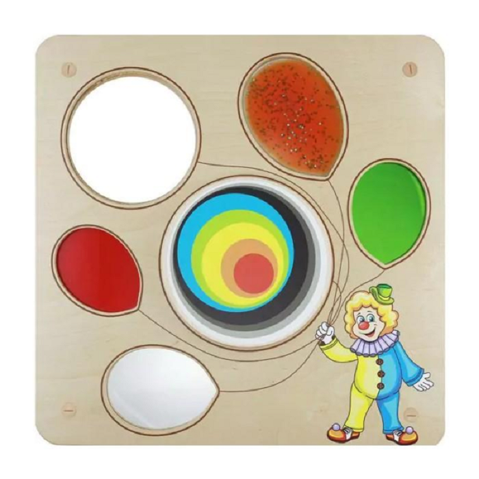 Клоун и воздушный шар — всегда одна из лучших комбинаций, которая может легко привлечь внимание маленьких детей. Настенные элементы предлагают выбор визуальных и тактильных сенсорных тренировочных элементов, включая зеркало, цветное отражение, вогнутое зеркало и т. д. Вращающееся колесо посередине также идеально подходит для тренировки навыков концентрации.