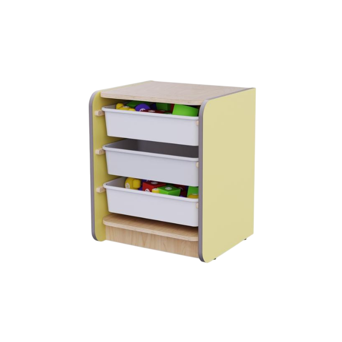 Одинарный модуль для хранения игрушек создан для организации пространства в игровой комнате детского сада. Укомплектован 3 пластиковыми ящиками, полностью вынимающимися из полозьев, что помогает поддерживать порядок и чистоту в ДОУ.