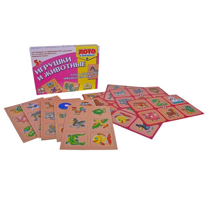 Лото в картинках для обучения детей английскому и немецкому языку «Игрушки и животные»