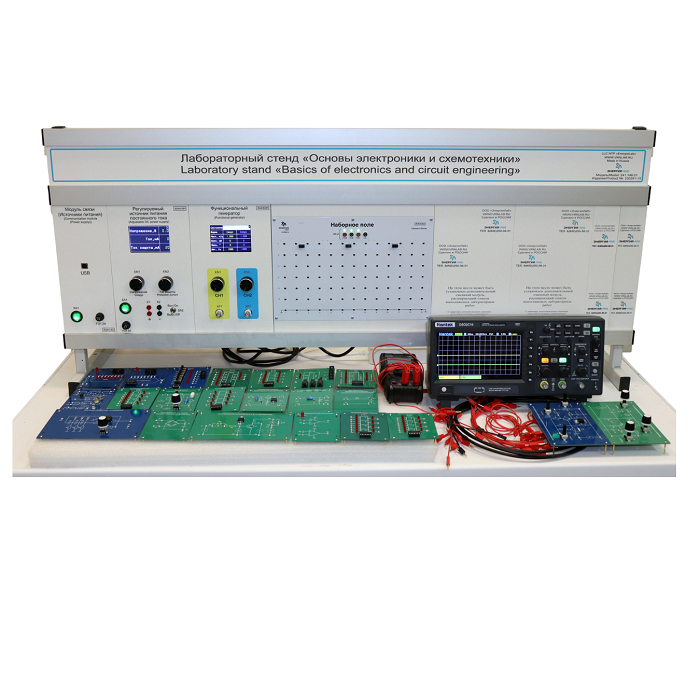 Учебное лабораторное оборудование «Основы электроники и схемотехники» предназначен для проведения лабораторно-практических занятий в учреждениях начального профессионального, среднего профессионального и высшего профессионального образования, для получения базовых и углубленных профессиональных знаний, и навыков.