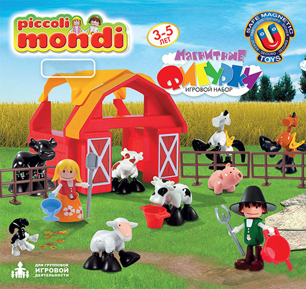 Оригинальный магнитный конструктор включает детали с магнитами, из которых можно составить подвижные фигурки людей и животных для сюжетной игры.