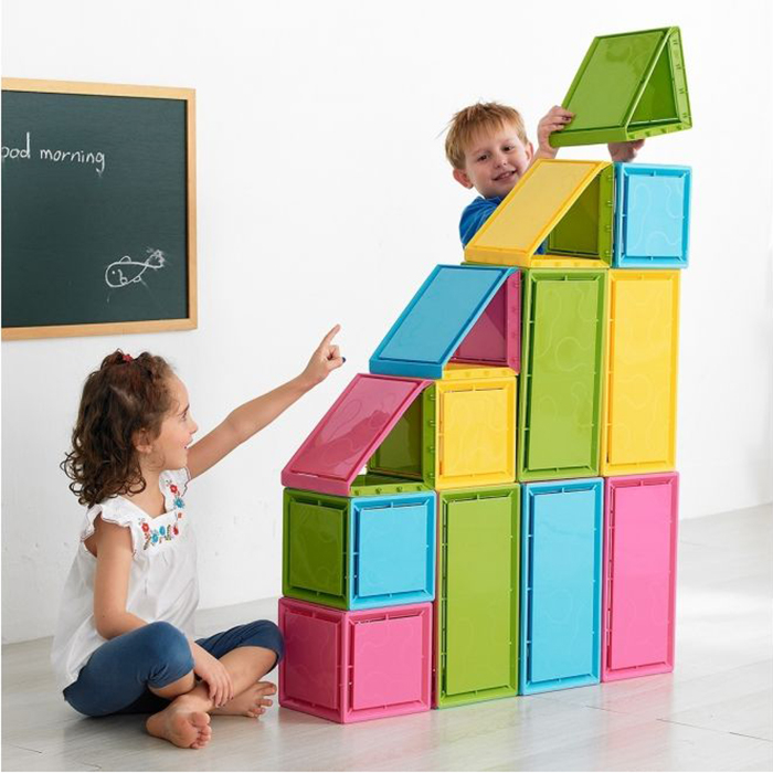 Красочные строительные блоки с крупным масштабом отличаются высоким качеством. Каждую панель можно штабелировать для экономичной транспортировки и минимального хранения. Панели могут быть собраны в виде кубов или призм.