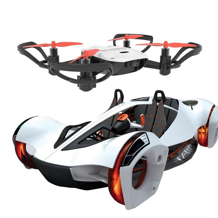 Набор включает в себя беспилотные робоавтомобили, квадрокоптеры(рой дронов), поле для робоавтомобилей с управляемыми светофорами, трасса для квадрокоптера.