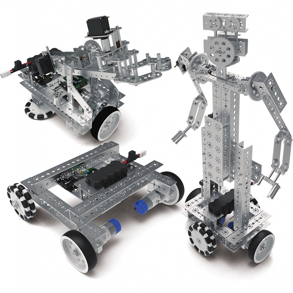 Робототехнический конструктор представляет собой идеальную платформу для творчества, предлагая прочные алюминиевые элементы для строительства, мощные приводные двигатели и расширяет возможности набора Lego Mindstorms EV3 . Этот набор предоставляет аппаратное обеспечение для разработки тяжелых роботов с дистанционным управлением для команд до 4 участников.