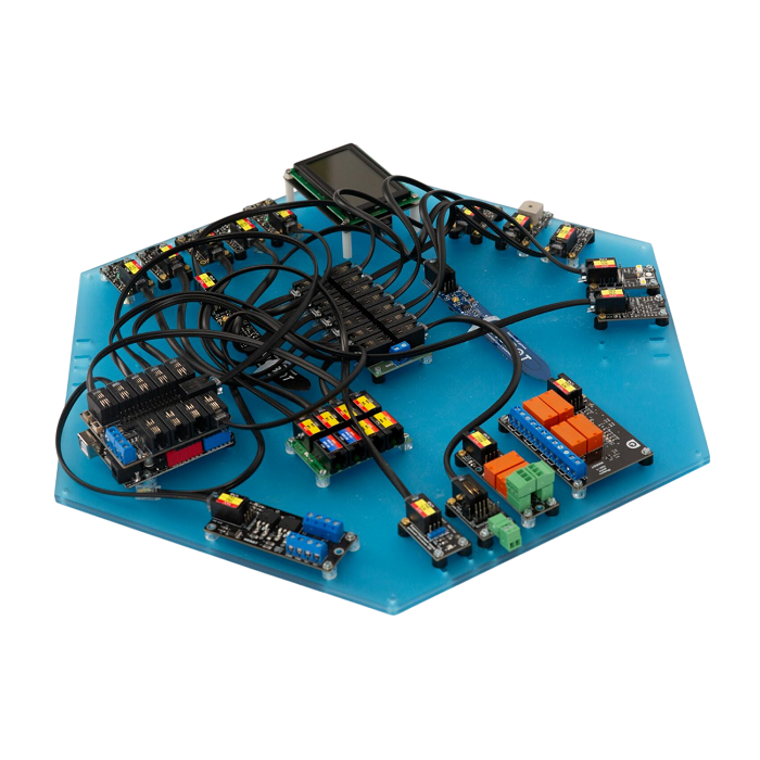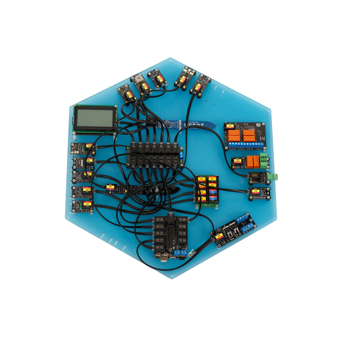 Образовательный набор «Квант ЙоТик М1» развивает навыки программирования, конструирования, механического и электрического монтажа. Набор специально создан для творческого изучения технологий «Интернета вещей». В наборе нет корпуса, представляет собой набор электроники, необходимый для творческих проектов: контроллер «ЙоТик 32», 10 датчиков, 6 исполнительных устройств, 5 вспомогательных плат и дополнительные комплектующие для взаимодействия с набором.