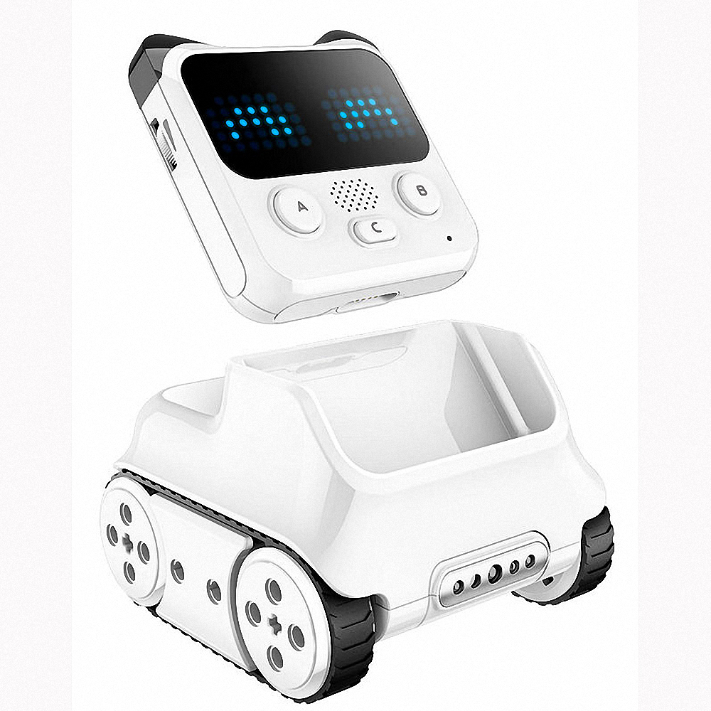 Codey Rocky, оснащенный более чем 10 электронными программируемыми модулями, включая звуковой датчик, датчик освещенности и светодиодный матричный дисплей, является сокровищницей веселья, которая играет музыку, следит за светом, имитирует выражения лица и многое другое благодаря простому кодированию, предоставляя детям возможность навыки превращать свое воображение в реальность и испытывать восторг от их достижений.