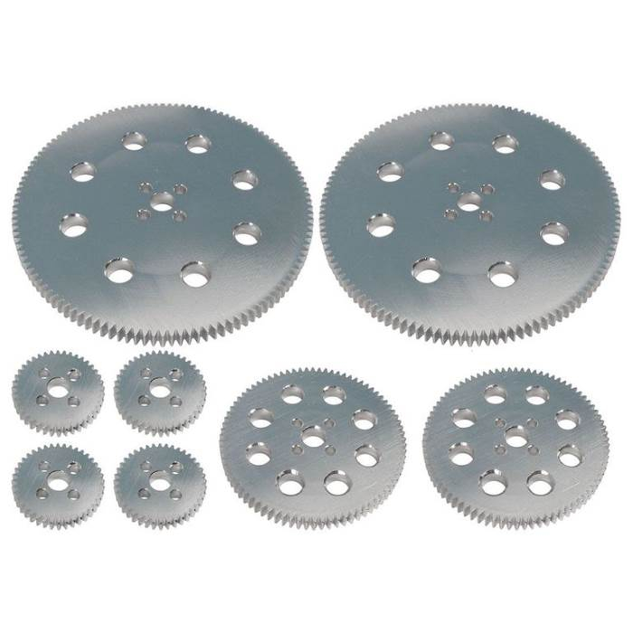 Комплект зубчатых колёс и подшипников включает в себя два конических зубчатых колёса из высокопрочного алюминиевого сплава и два полимерных подшипника, выдерживающие очень высокие нагрузки, возникающих в работающих механизмах. Этот набор позволяет изменять направление передаваемого усилия на 90 градусов.