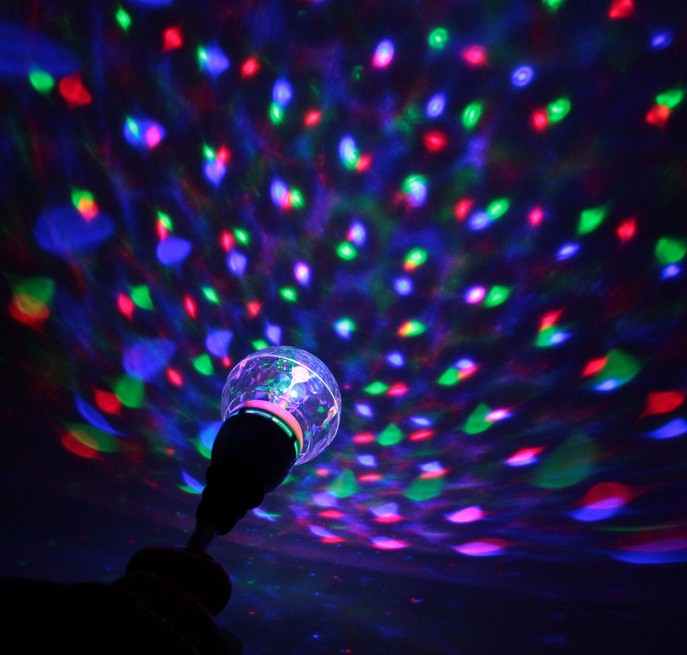 Лампа хрустальный шар создаёт яркий эффект благодаря динамическому вращению цветных лучей.