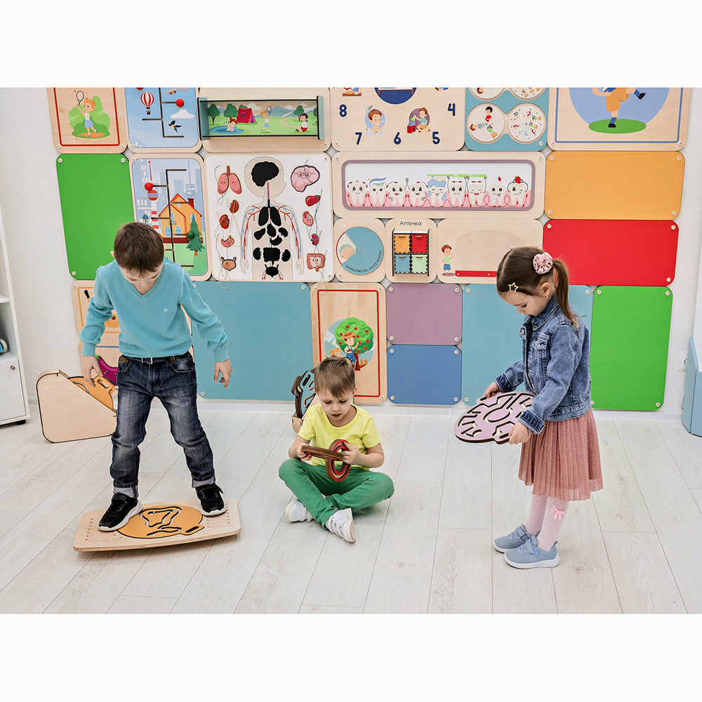 Это игровой нейротренажёр для улучшения координации движений, развития внимания и логического мышления. Состоит из балансира для ног и четырёх лабиринтов-балансиров для рук, которые вкладываются в специальное углубление на ножном балансире.
