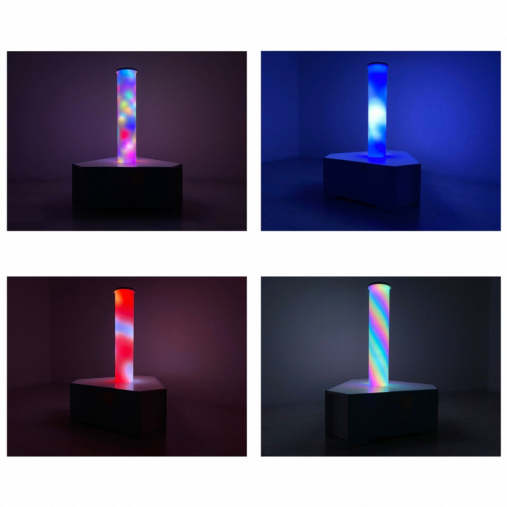 Световое оборудование для оснащения сенсорной комнаты. Колонна может быть не только украшением интерьера, но и вспомогательным инструментом при работе с детьми. Мягкие и плавные переливы света завораживают и расслабляют ребёнка, снимают эмоциональное напряжение, помогают забыть тревоги и волнения.